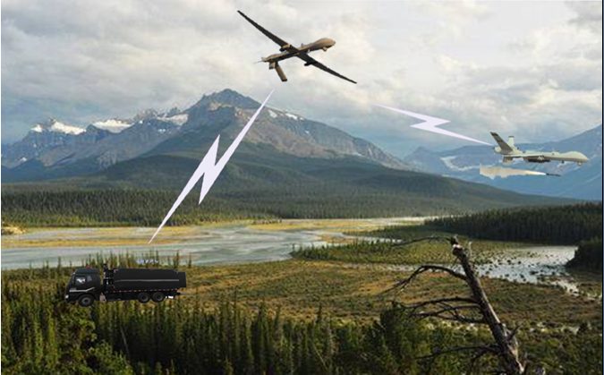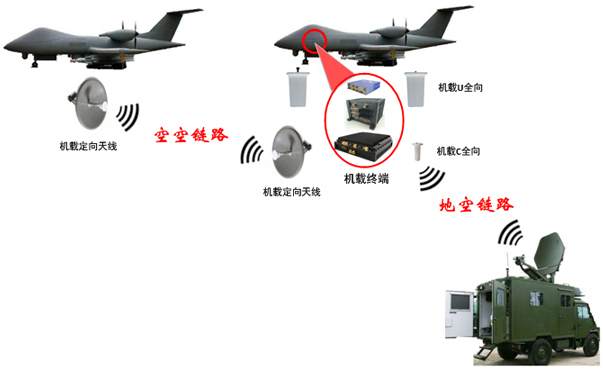 该产品用于中程无人飞行器的遥控、遥测、侦察数据的无线通信。数据链具备中程无人飞行器的有效作用距离,且具备中继能力,一般用于国防安全。